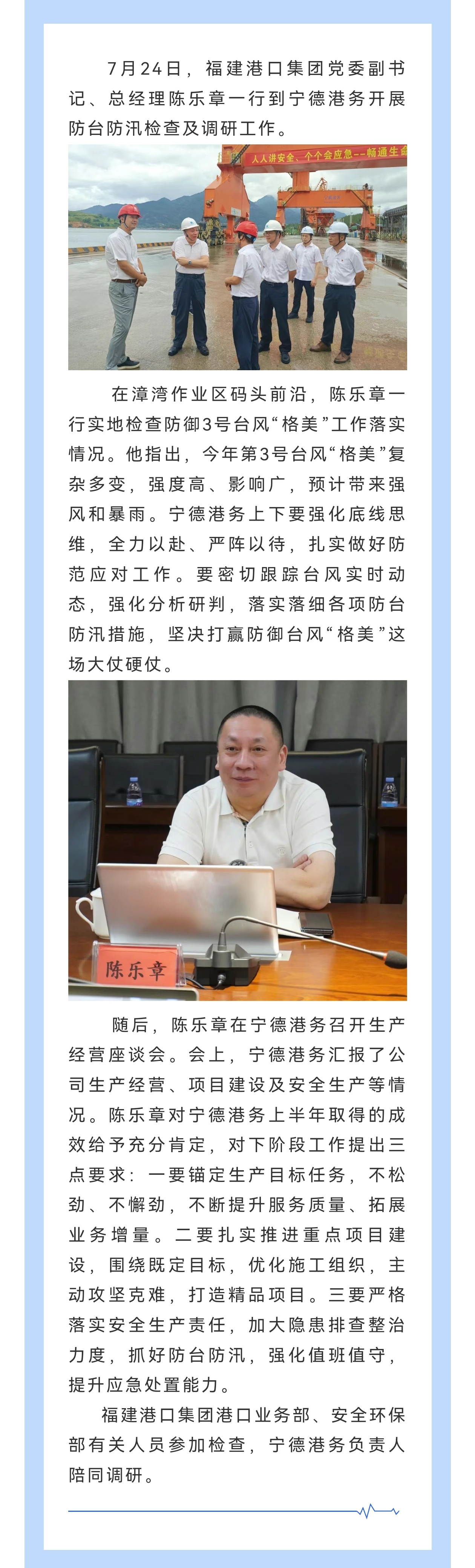 [四下基层丨福建港口集团党委副书记、总经理陈乐章到金年会