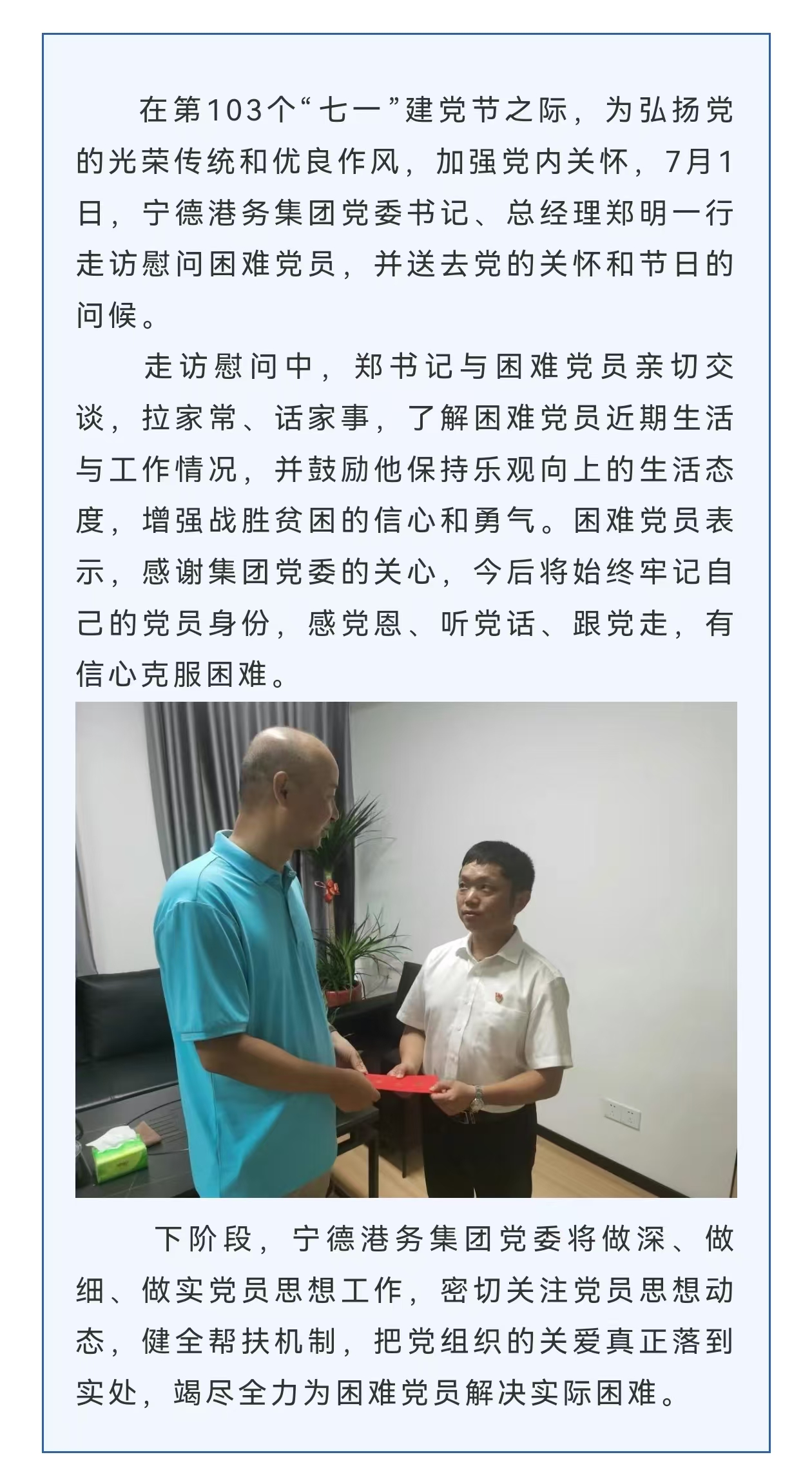 领导开展“七一”走访慰问活动 - 金年会(中国)官方网站