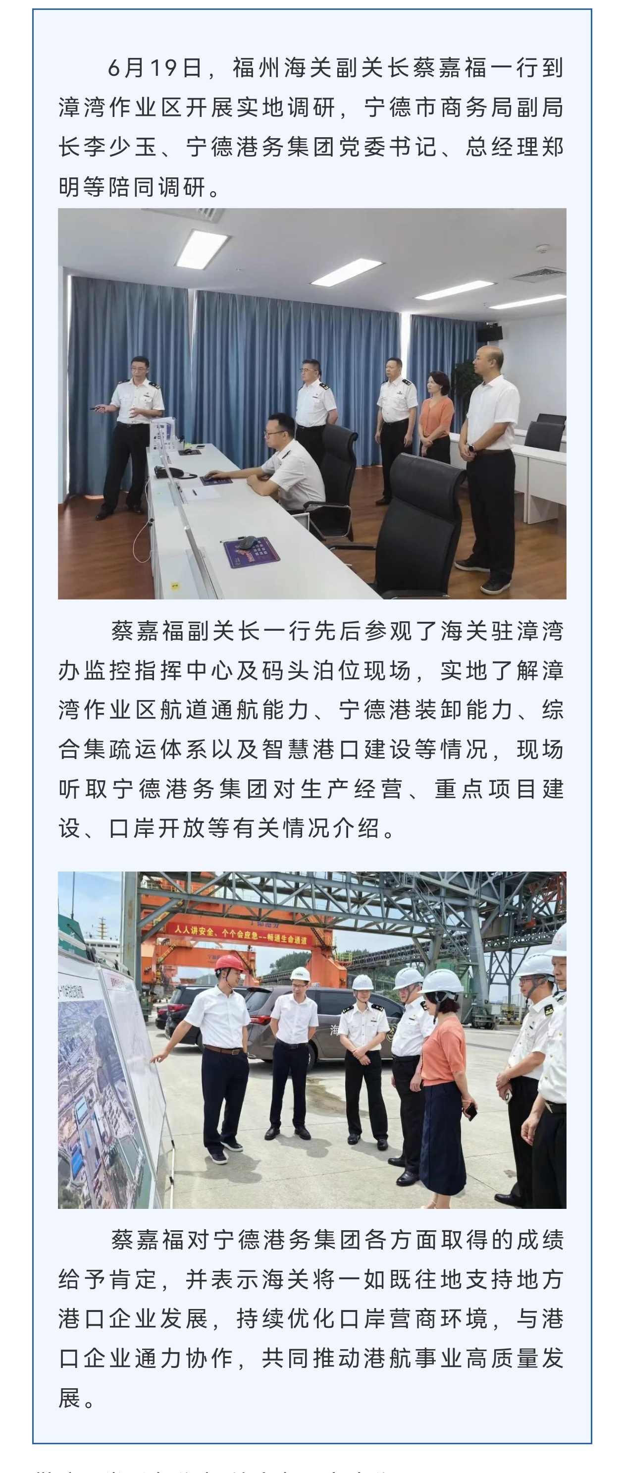 [领导调研|福州海关副关长蔡嘉福一行到漳湾作业区开展调研 - 金年会(中国)官方网站