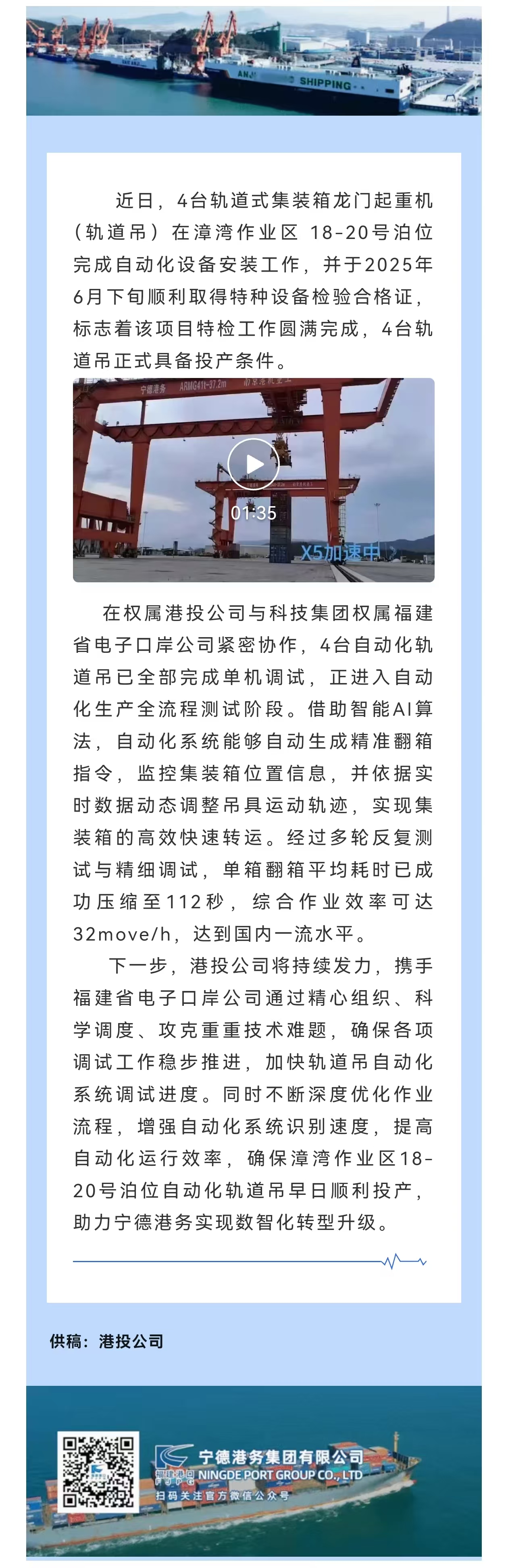 [向“新”而行|漳湾作业区18-20号泊位自动化轨道吊特检取证圆满完成 - 金年会(中国)官方网站
